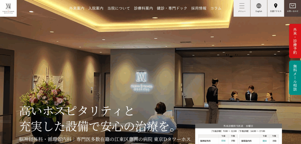 東京Dタワーホスピタルは、高性能医療機器を取り揃え、保険診療を主軸とした治療に強みがあります。